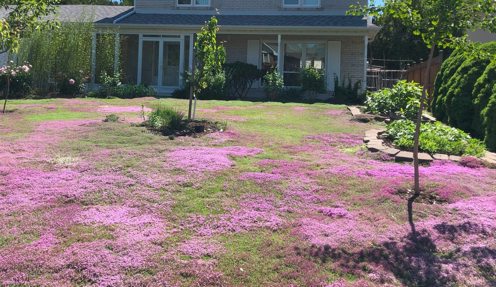The above photo shows half of the backyard thyme lawn. The homeowner who created these hasn’t mowed any lawns for decades!