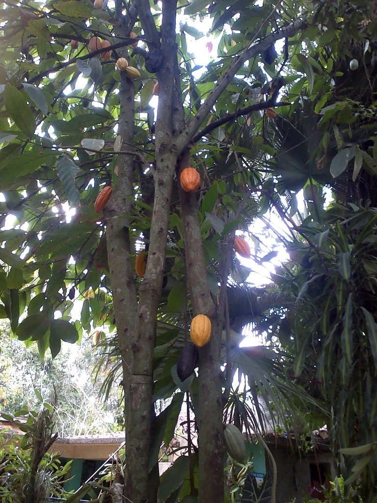 One of them helped guide us through the garden, explaining and identifying plants and noting many of their medicinal qualities.  She pointed out to us a tall cacao tree with pods, the first time in my life I’ve ever seen them growing outdoors.